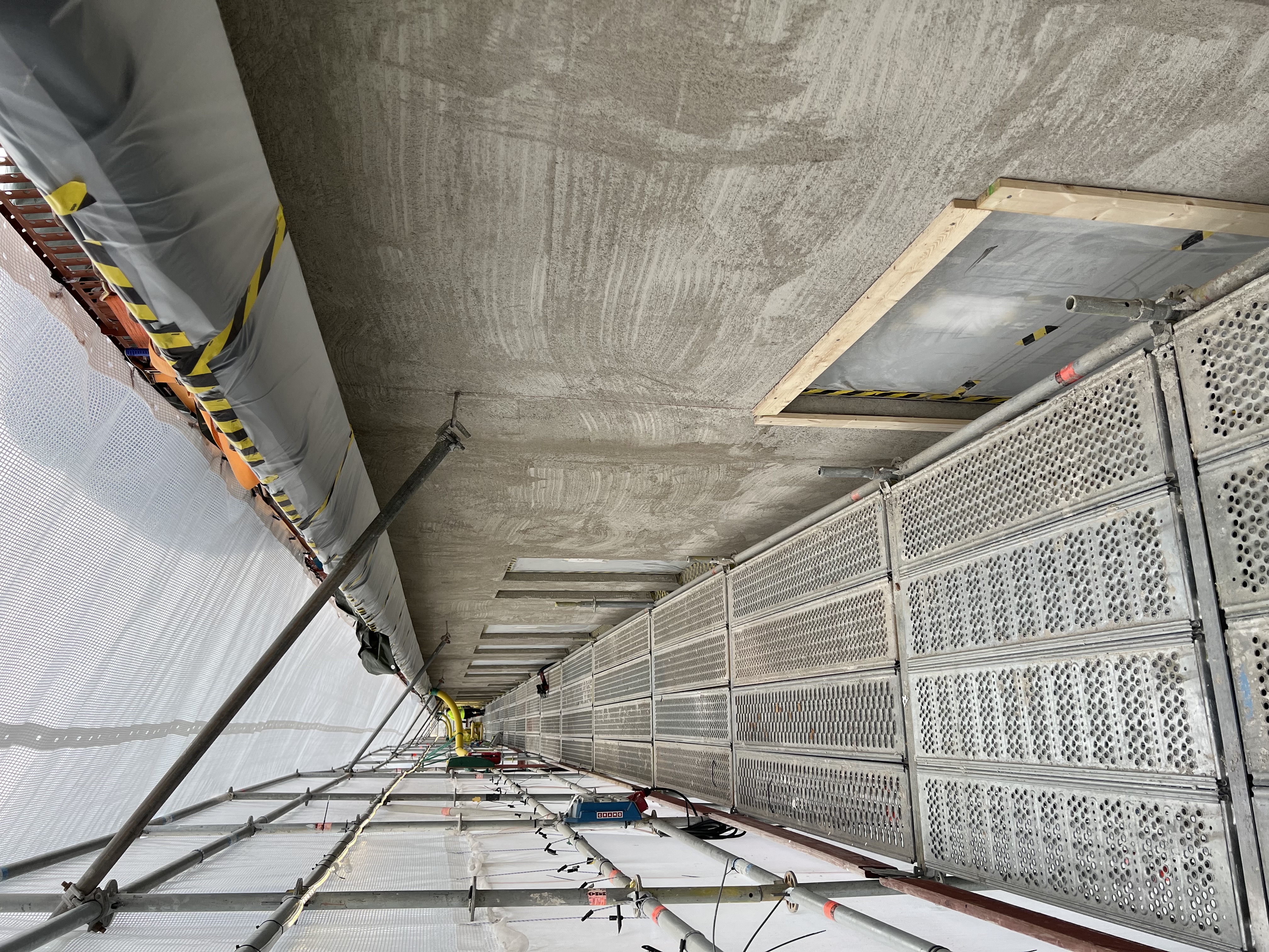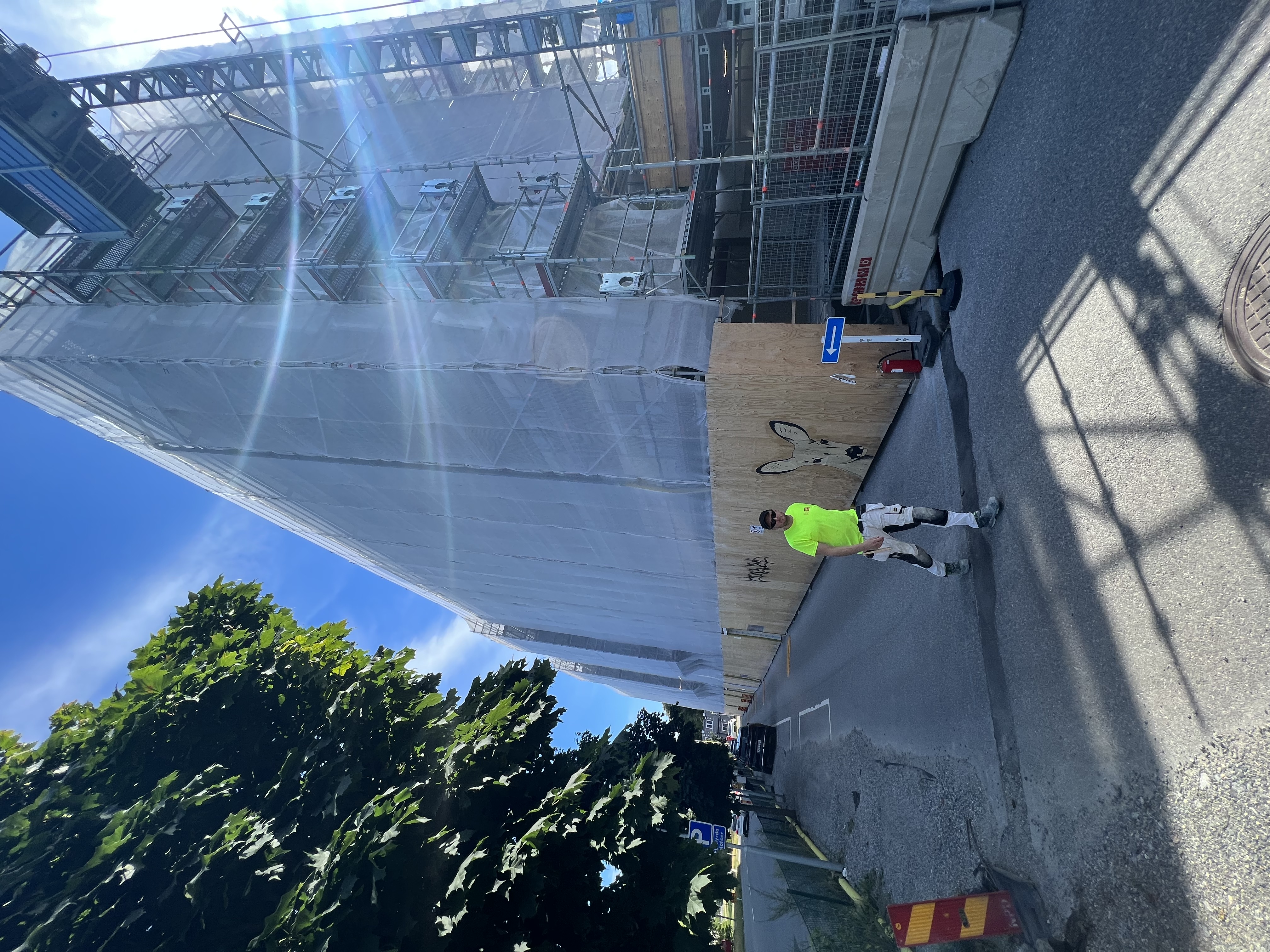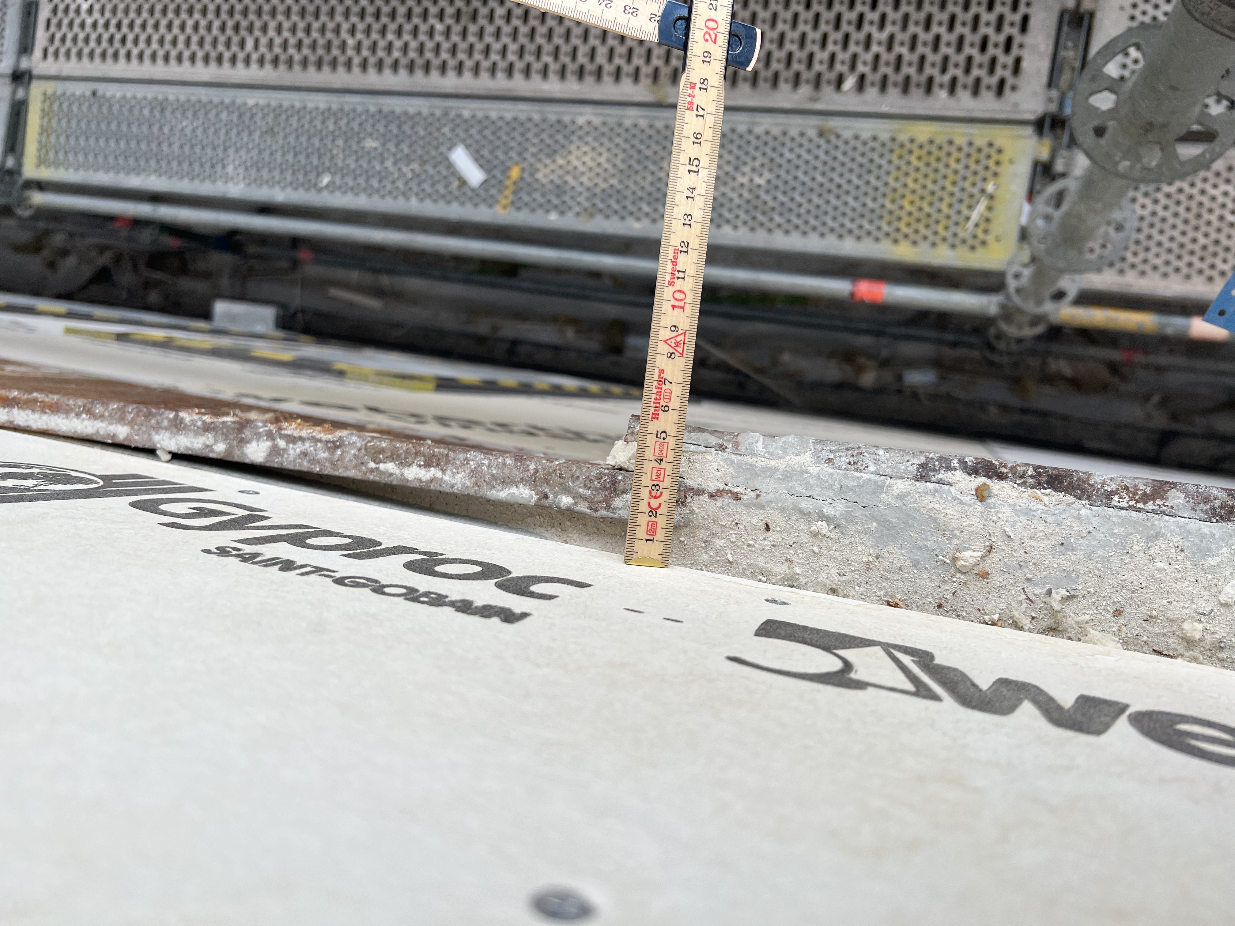 Som sista puskikt har man tillämpat Webermin 208 Rivputs Fin, som är en genomfärgad rivputs med glimmereffekt. Ytan skrapas därefter med spikbräda.